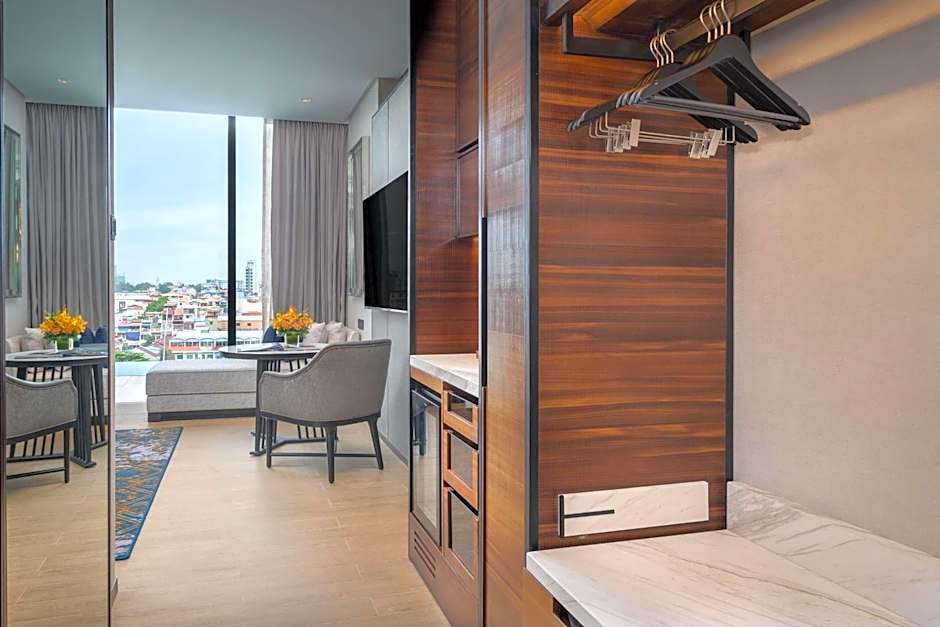 Providing free toiletries and bathrobes, this suite includes a private bathroom with a walk-in shower, a bath and a hairdryer. The spacious air-conditioned suite provides a flat-screen TV with cable channels, a tea and coffee maker, executive lounge access, a seating area as well as city views. The unit offers 1 bed.